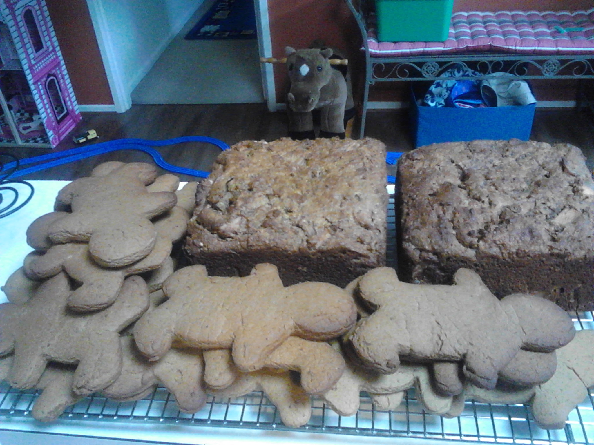Last week after cooking a roast chicken l made some ginger bread men for my children, and a couple of apple and cinnamon cakes which l slice into single serves and freeze for the lunch box (all gluten free of course)