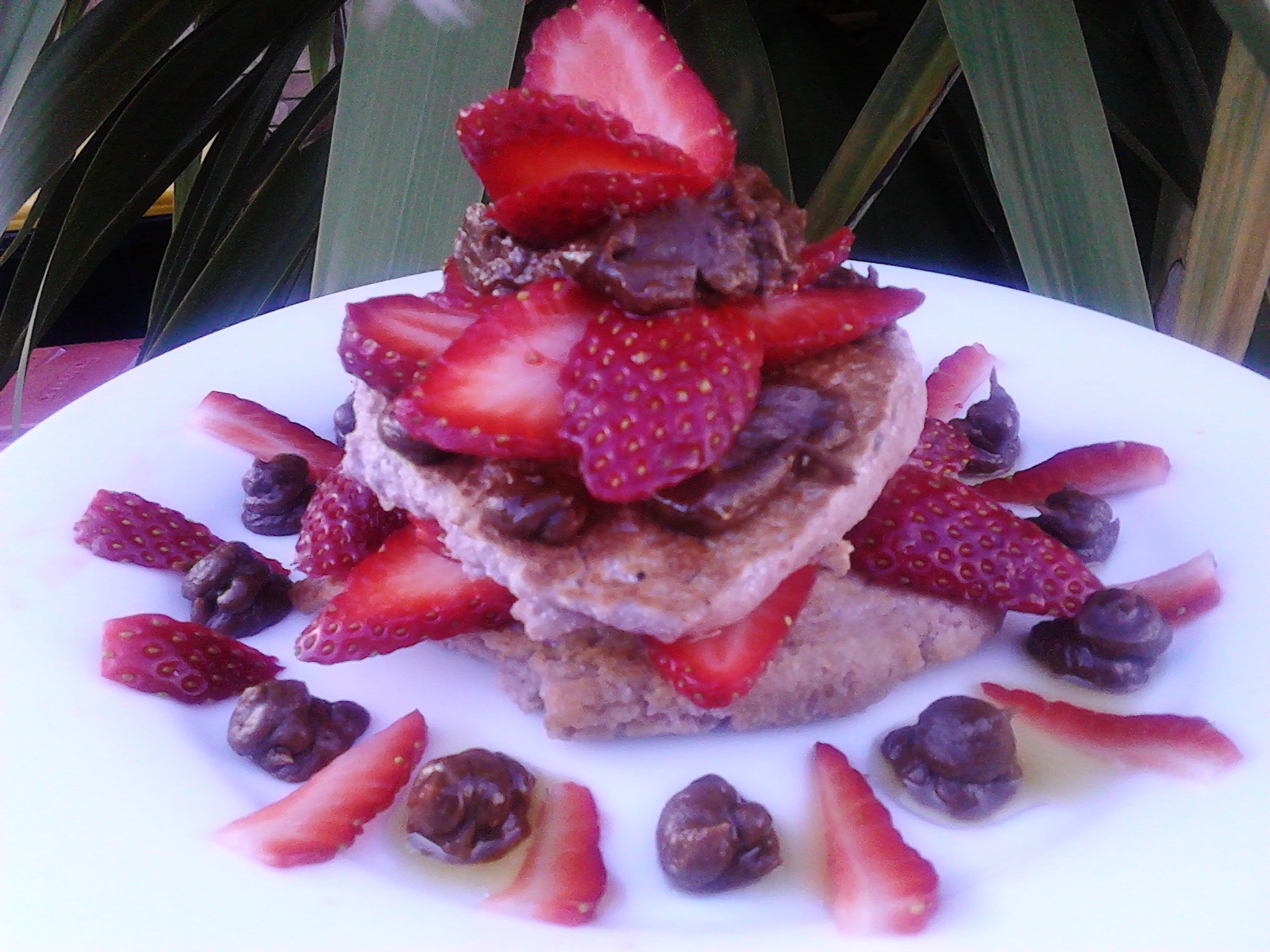 In this picture l added the mousse to a berry pancake which was made using Buckwheat & Coconut flours, eggs, water, chia seeds and berries.