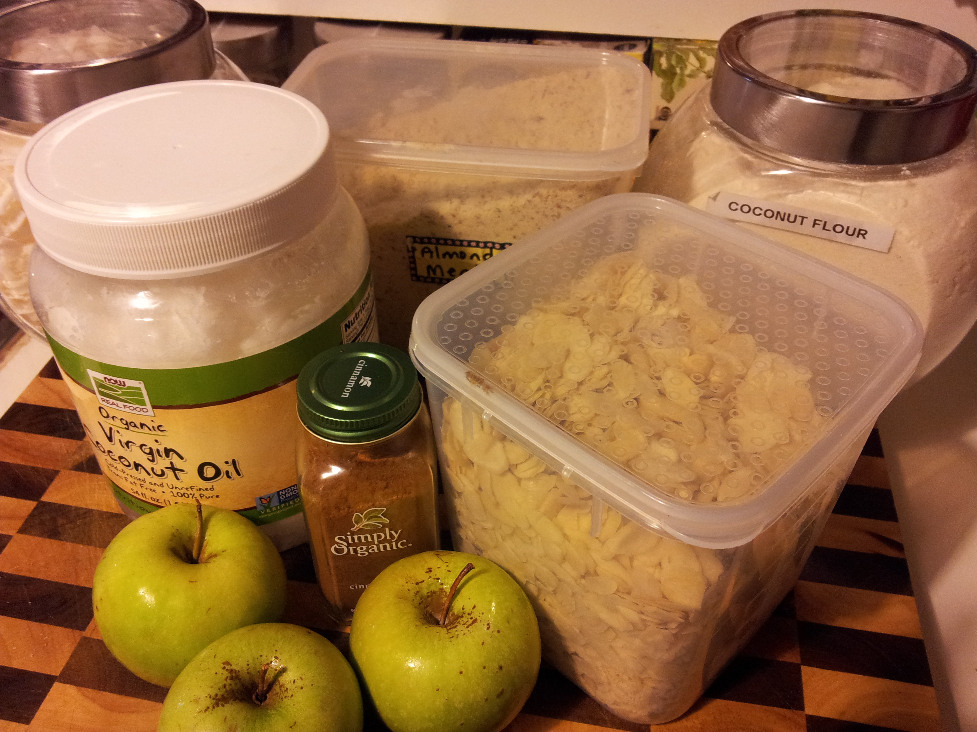 Almond meal: Sprinkle 2 tablespoons over the apples (you could rub in the coconut oil here if you want)