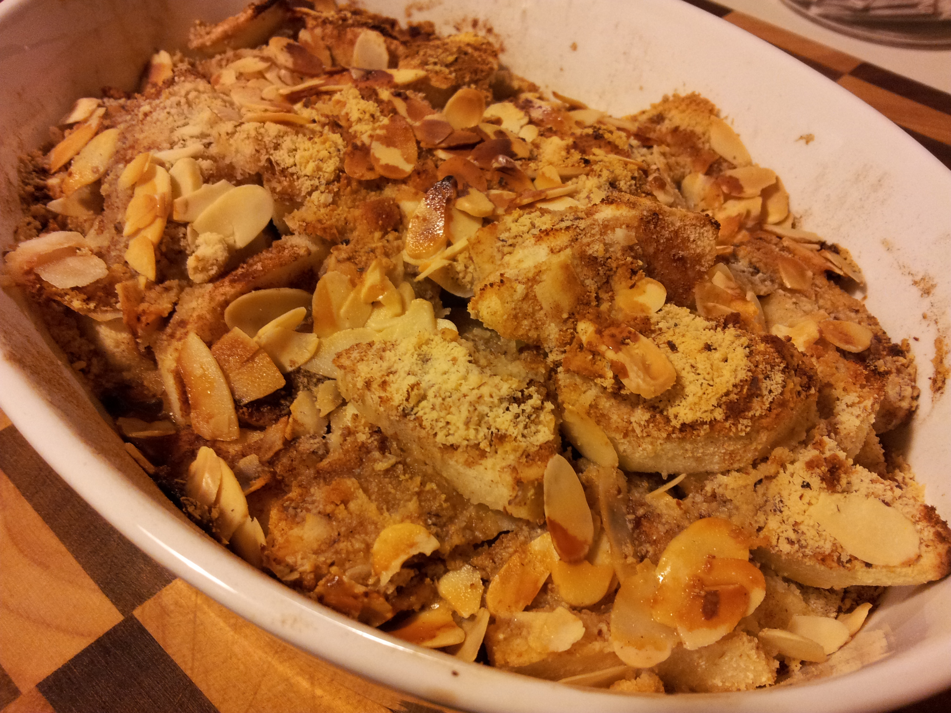 Flaked almonds: Sprinkle a generous hand full over the dish. There really isn’t a limit as to how much you can put on as they go a lovely brown colour and add some crunch.