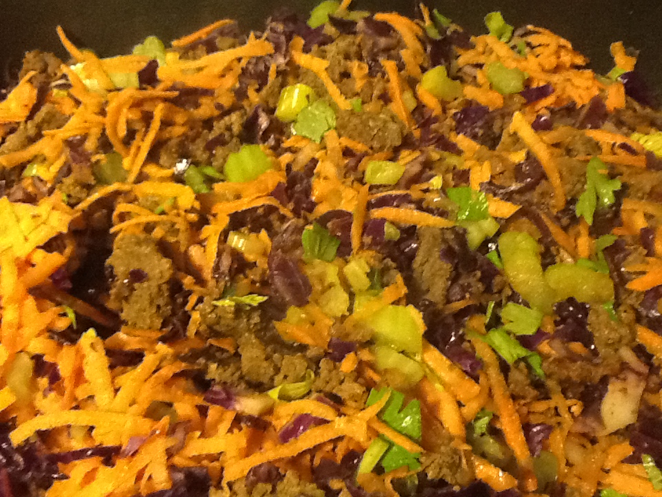 1/2 red or green cabbage sliced (a bit of both is nice)