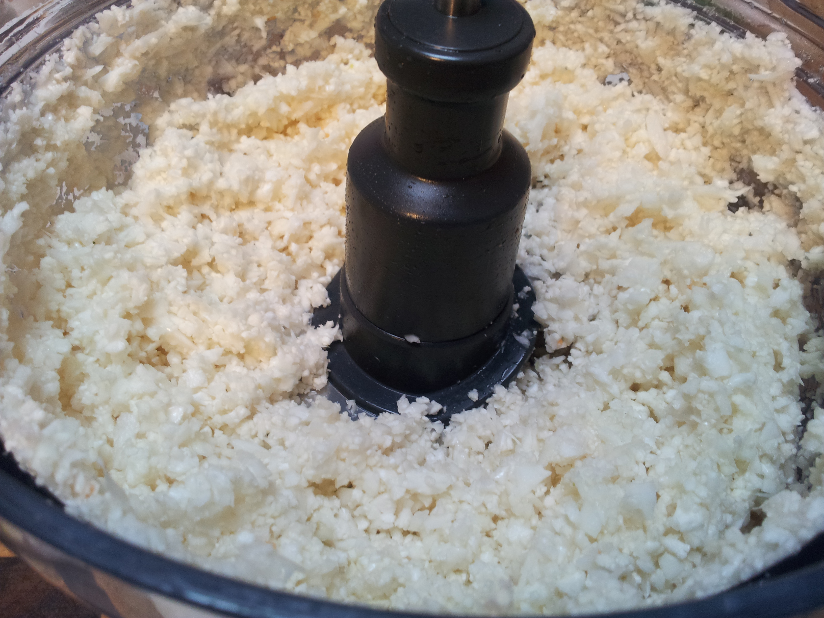 Another method is to steam the cauliflower pieces first and them process them in the food processor and then you can have it plain or just give it a quick cook in the pan with the fresh ingredients.