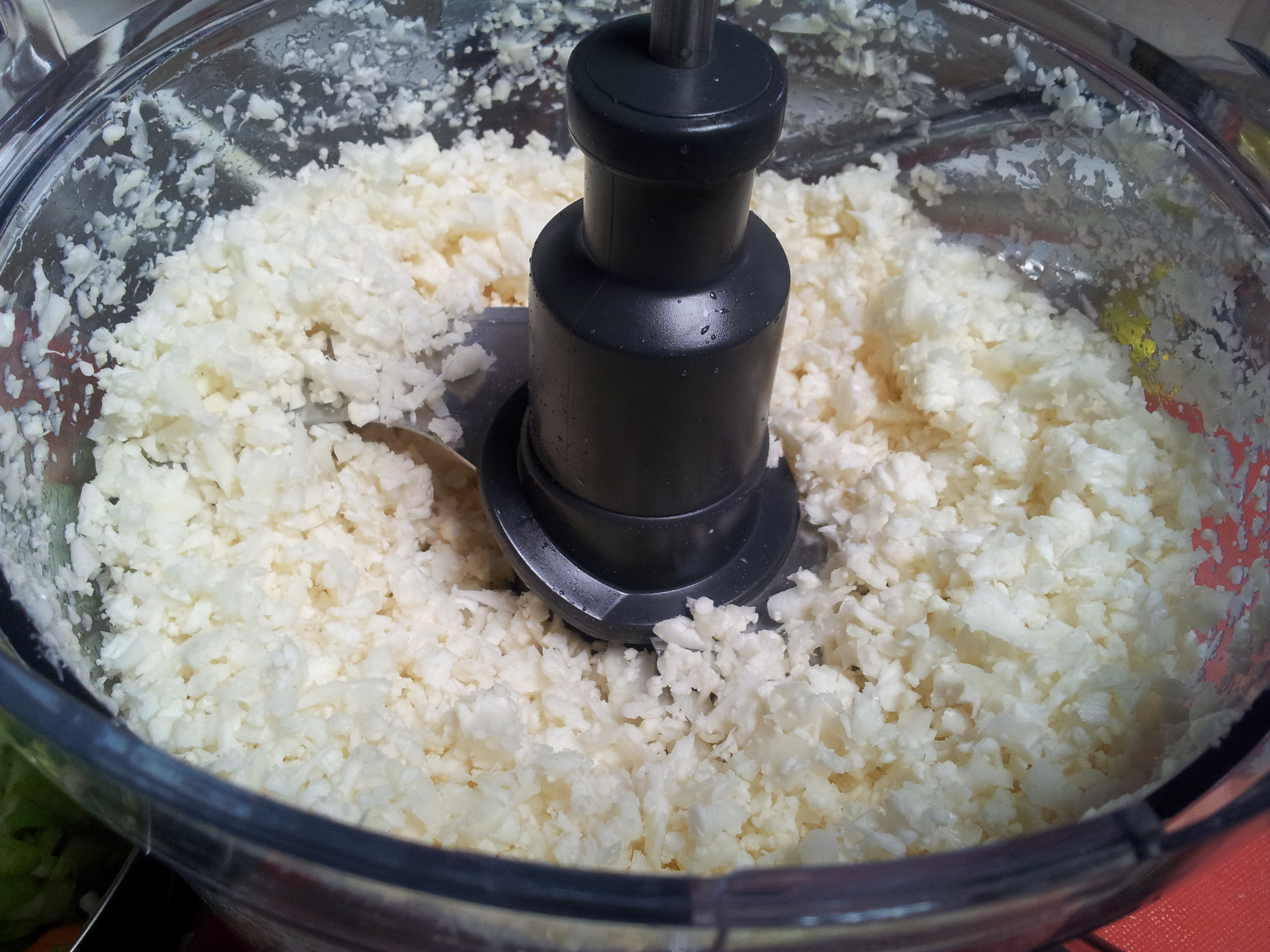 My favourite way to make cauliflower rice is to cut the fresh cauliflower into smallish pieces and then blend it in the food processor. This takes about 10 seconds to turn into cauliflower rice. You don’t want it in the food processor too long or it will be a pulp and wont cook nicely.