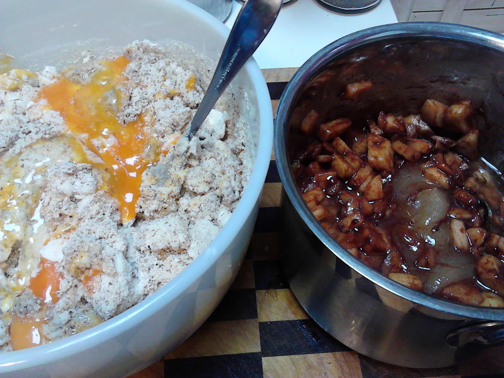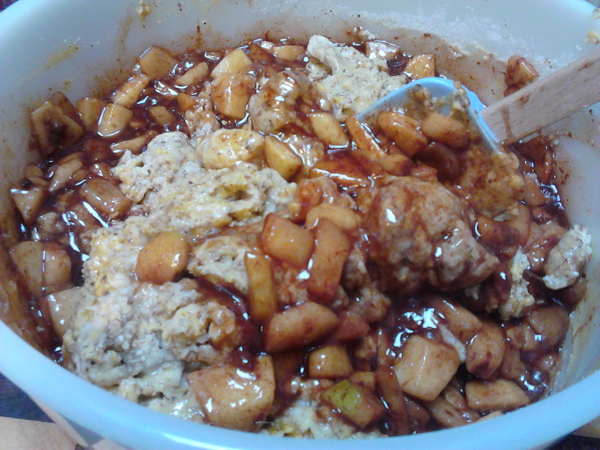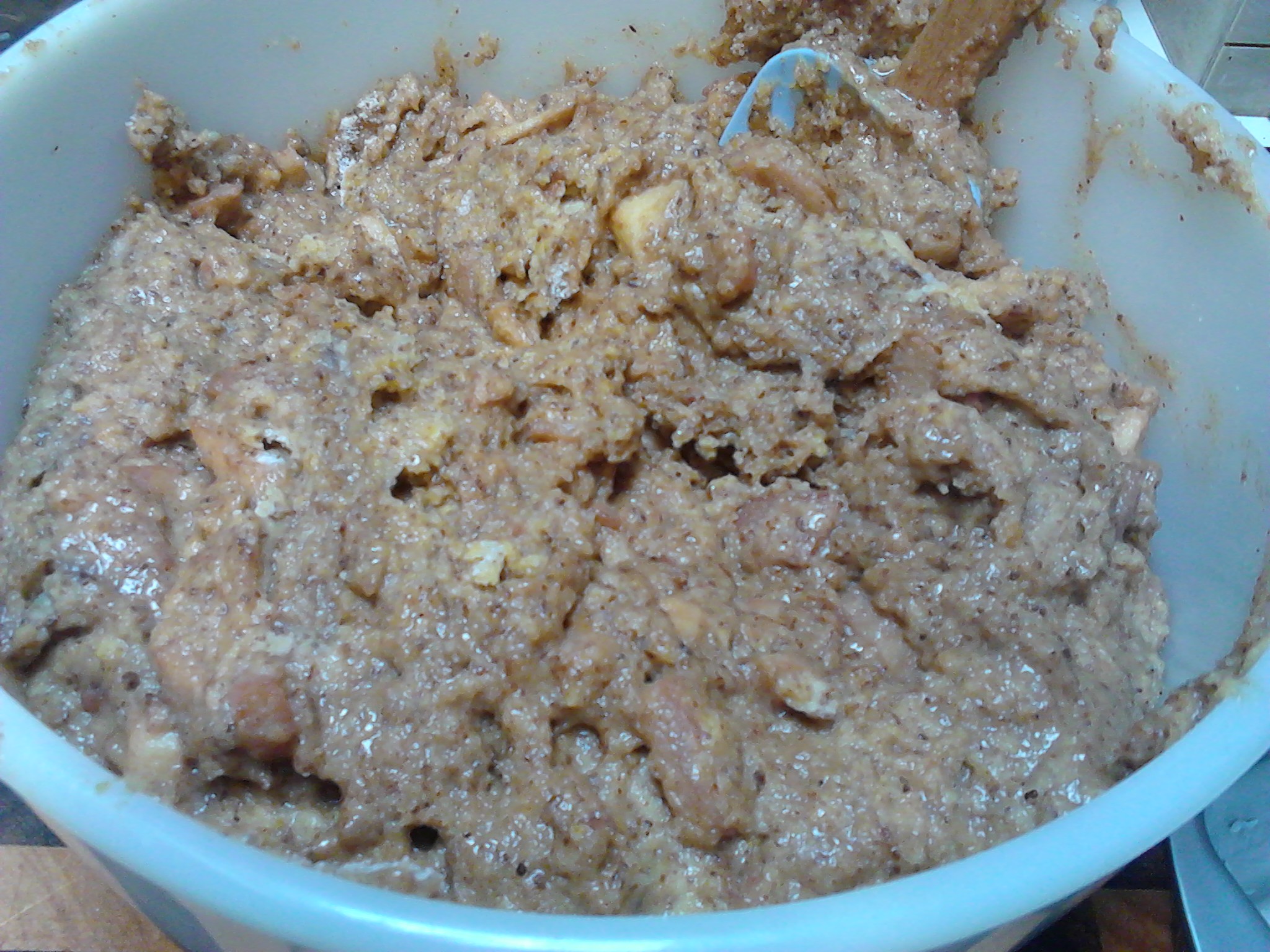 While the saucepan mix is cooling add all of the other ingredients into a bowl, then add the contents of the saucepan to the bowl and mix together gently.