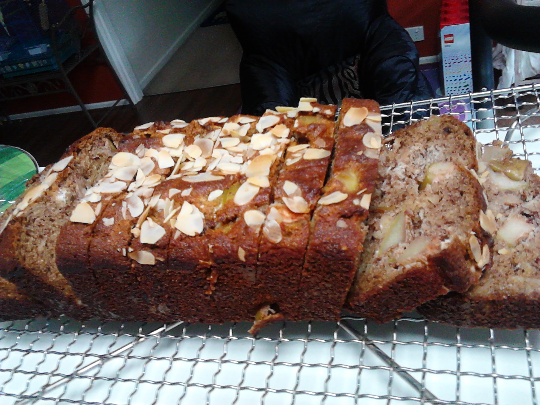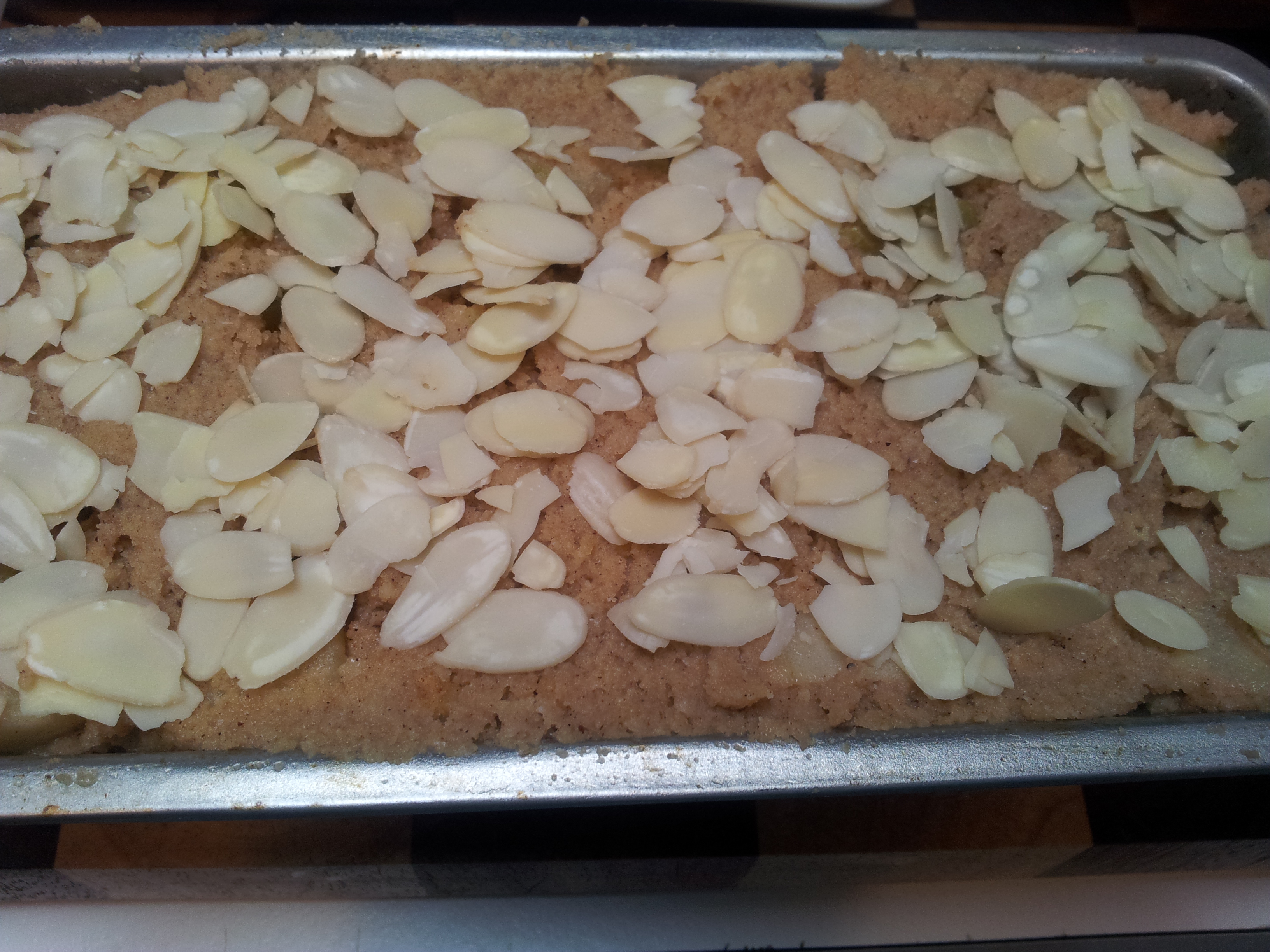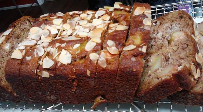 Place mixture in a greased and lined loaf tin or tins depending on whether you doubled the recipe. Sometimes l add flaked almonds to the top of the cake and this is a nice touch. Bake in a 180 degree celsius oven for approximately 40 minutes or until the middle of the cake is firm.