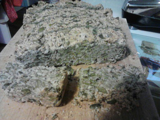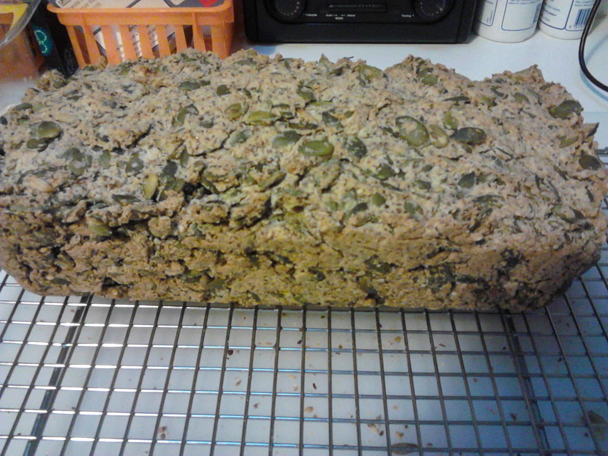 This recipes uses whole sunflower and pumpkin seeds which gives a rustic appearance and texture but if you want a more refined loaf you could process these slightly before mixing. The pepitas are extra crunchy and the small pile left on the chopping board after cutting could be saved to pour on top of a salad for some extra crunch.