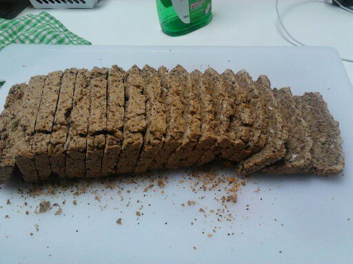 Mix together the dry ingredients. In a seperate bowl whisk the wet ingredients. Pour the wet ingredients into the dry ingredients and mix well. Pour into the baking dish and smooth the top until the mix is level. Place into a pre-heated oven 160 degrees celsius for around 40 minutes or until golden and firmish to touch. Remove from the oven and cut around the edges with a knife to separate the bread from the baking dish. Turn onto a cooling rack. I was able to slice this bread straight away while warm and a quick taste test confirmed how delicious it is. The smell in your kitchen while this dish is cooking will be divine.