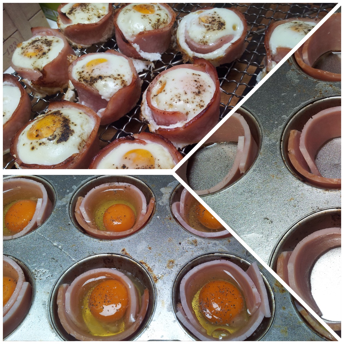 A really simple dish to make and a favourite with children. Grease your pan very well with coconut oil, place slices of bacon (ideally nitrate free) around the edges and break an egg (free range or organic) into each hole. Sprinkle your salt and pepper on top then bake in a 180 degree oven until the white is firm and the yolk is just cooked. If you have greased your pan well the muffins should just slip out.