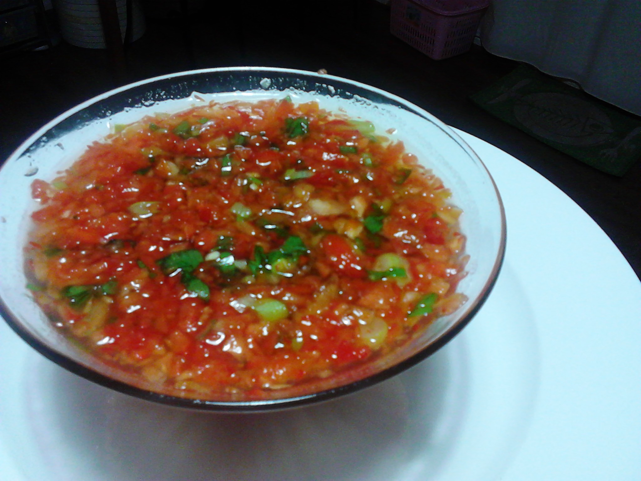 1 small red capsicum or 1/2 a largish one (Finely diced. I did this in the food processor)