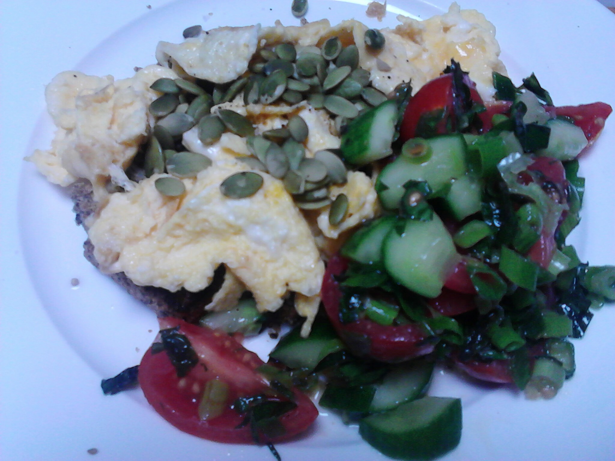 This is a very simple but tasty salad that is a wonderful side dish to a meal. I have had it for lunch the last two days with my home made seed bread and eggs, and it was really wonderful. I used baby Roma tomatoes that had been grown on the vine and they were so delicious and sweet. My own tomatoes are coming along nicely but need a few more weeks of the hot Australian sunshine to be ready to pick.
