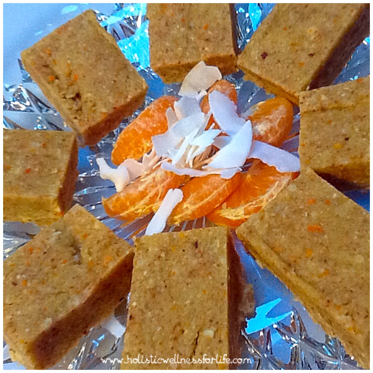 A delightful raw slice made from mostly healthy fats with a hint of mandarin and coconut. Keep this in the freezer and grab a piece when you are on the go or just feel like a completely satisfying snack.