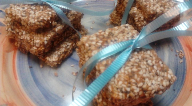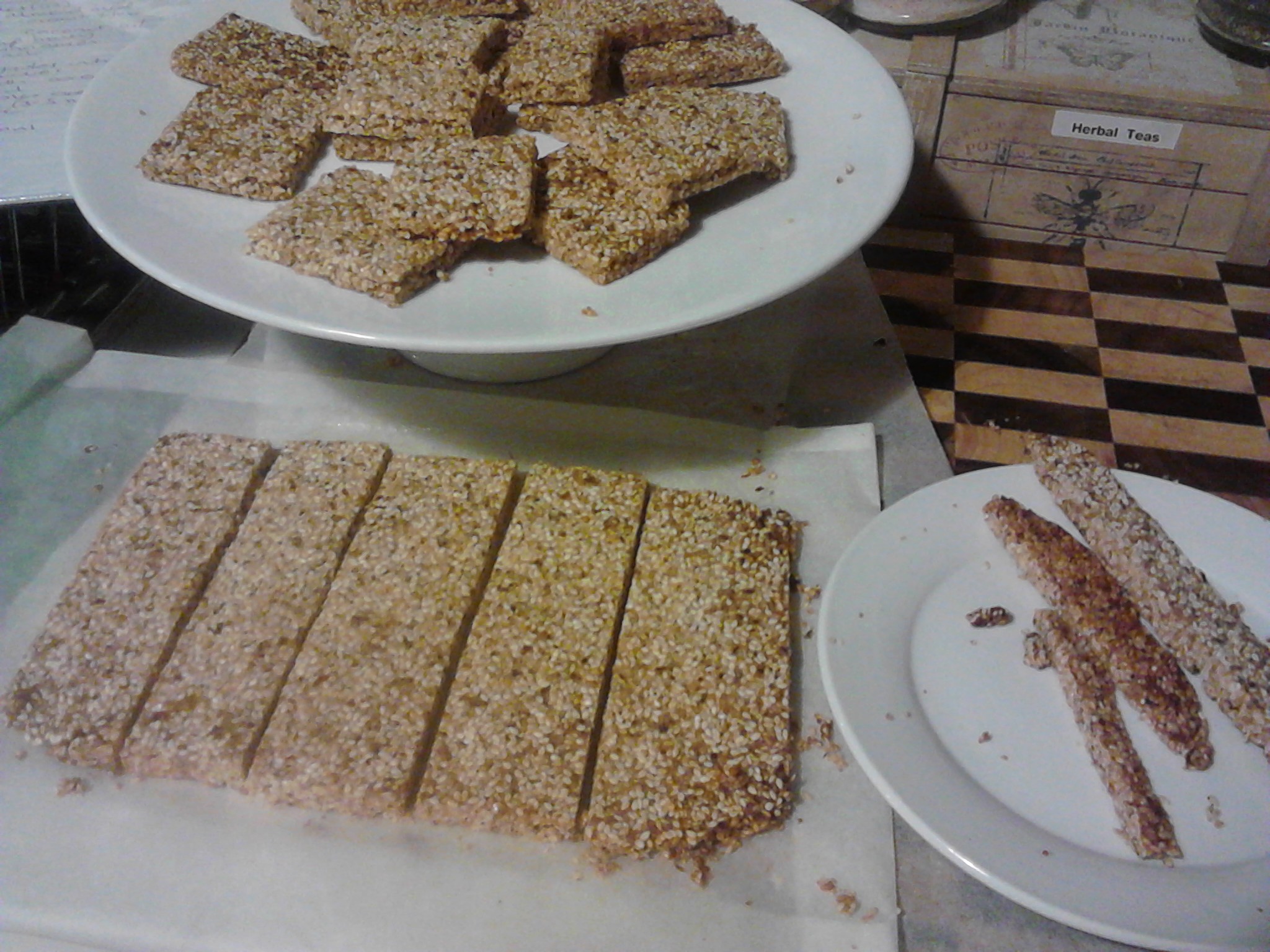 A favourite snack that you can make at home! This is a twist on the popular sesame snap but the recipe is easily modified to have a more traditional flavour. The original recipe is from ‘The Merrymaker Sisters” website and l have modified it by adding in poppy seeds and cinnamon.