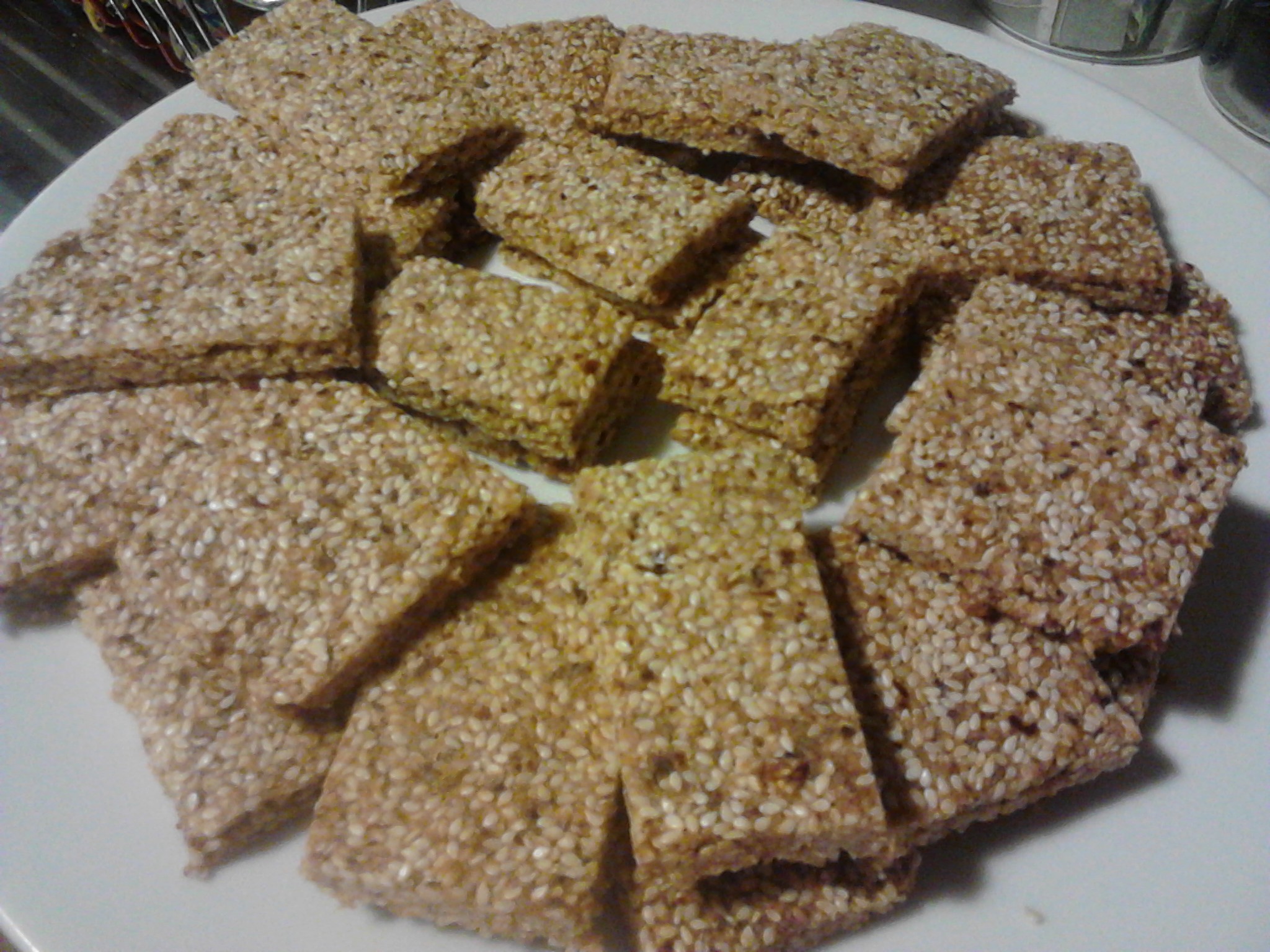 Note: If you want a traditional sesame snap leave the poppy seeds and cinnamon out and use 2 cups of sesame seeds.