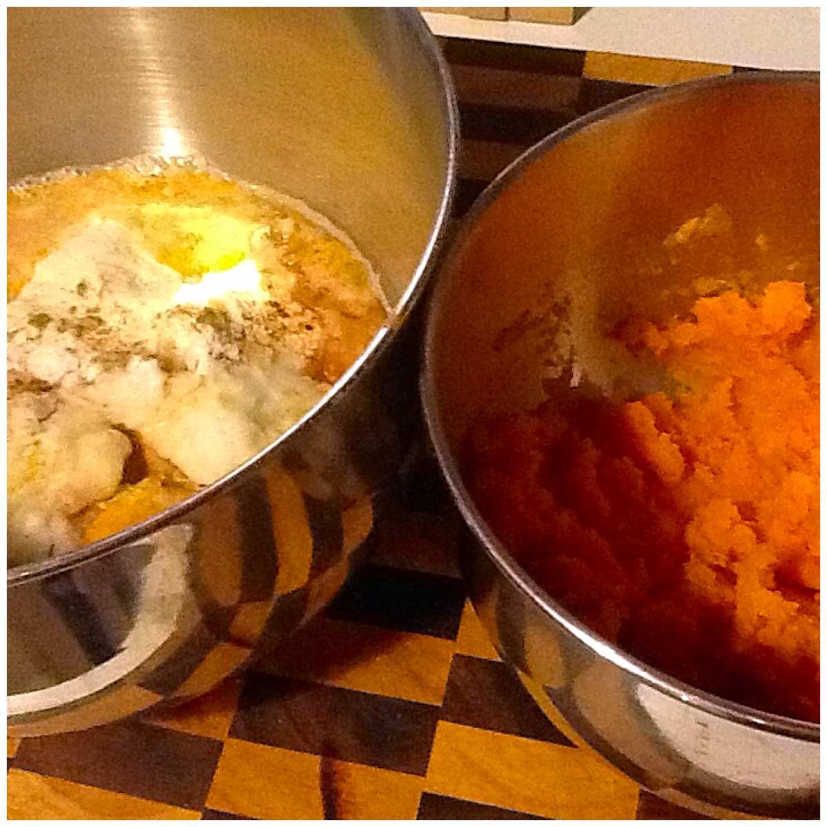 1 medium sized sweet potato peeled, steamed, mashed and cooled (about 2 cups when mashed)