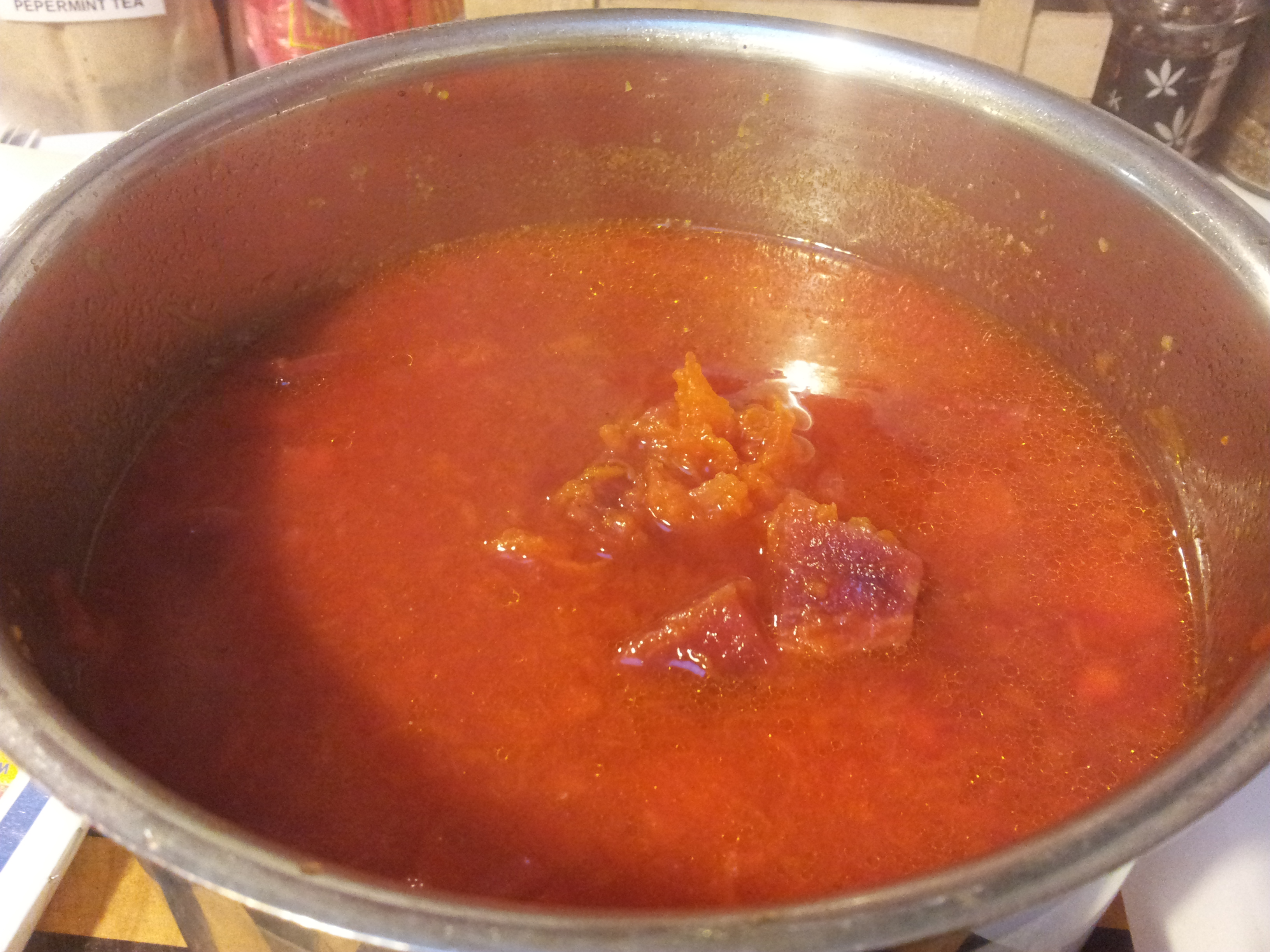 Add the stock and put the lid on and let simmer for about 60 minutes.
