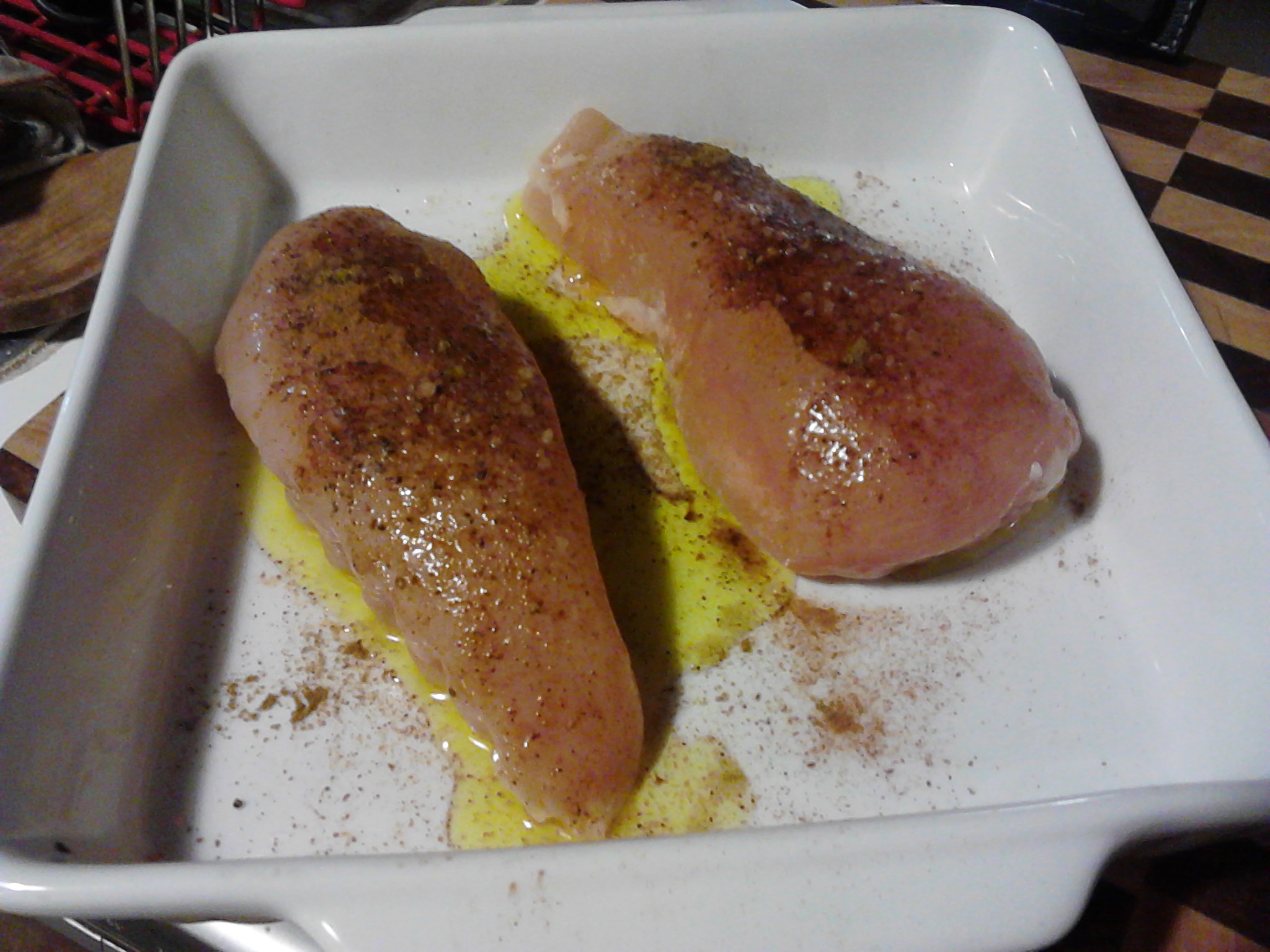 You can use as many chicken breasts as you like but l buy the free-range breasts in a pack of two. Give them a good wash with filtered water and pat dry.