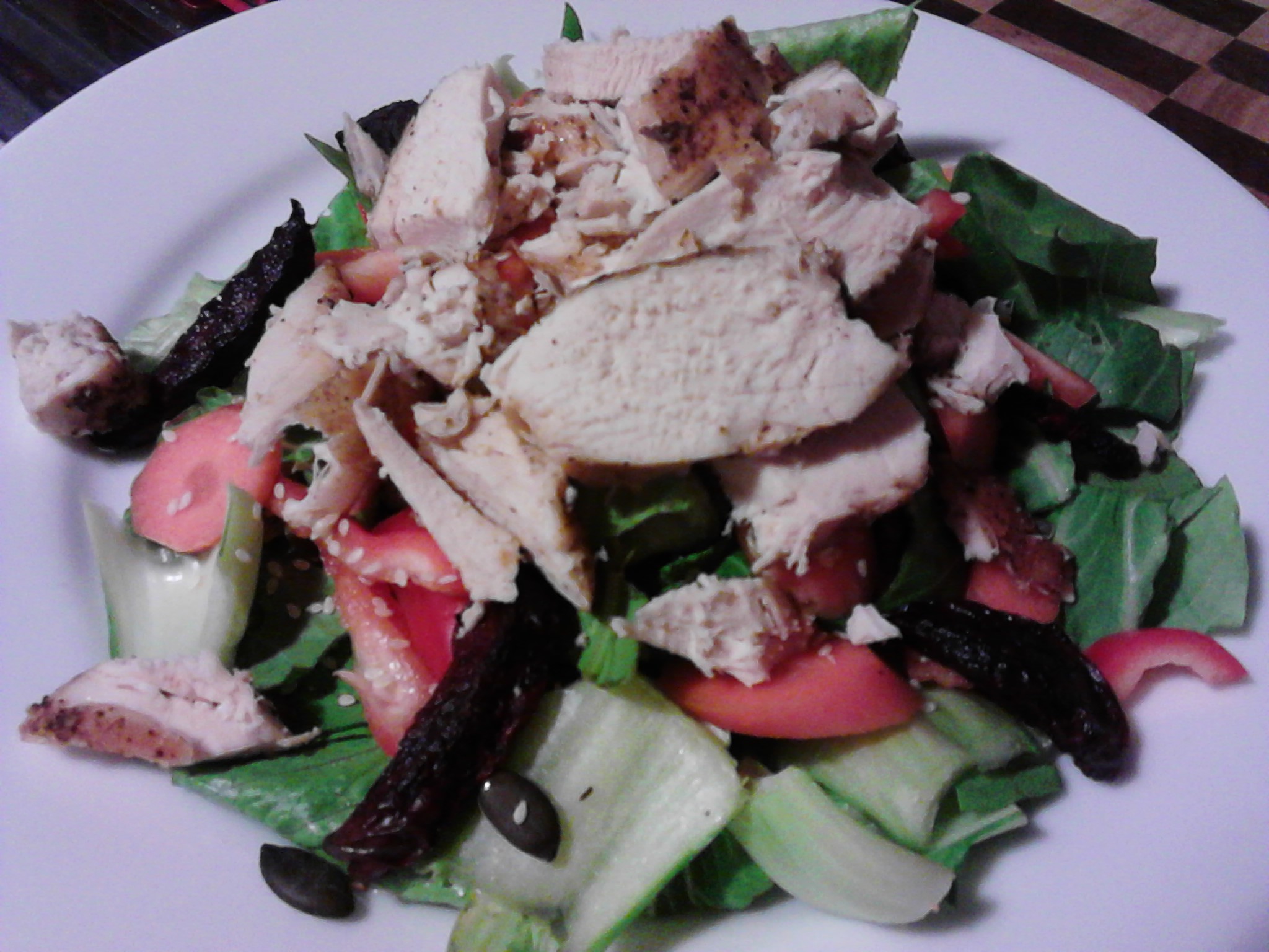 A delicious herb and nut filling compliments the tenderness of the chicken breast to form the base of the meal. Served hot or cold, each rolled chicken breast serves three people if you have a portion as in the pictures below which highlights the importance of balancing the meal out with an abundance of healthy raw and cooked vegetables.