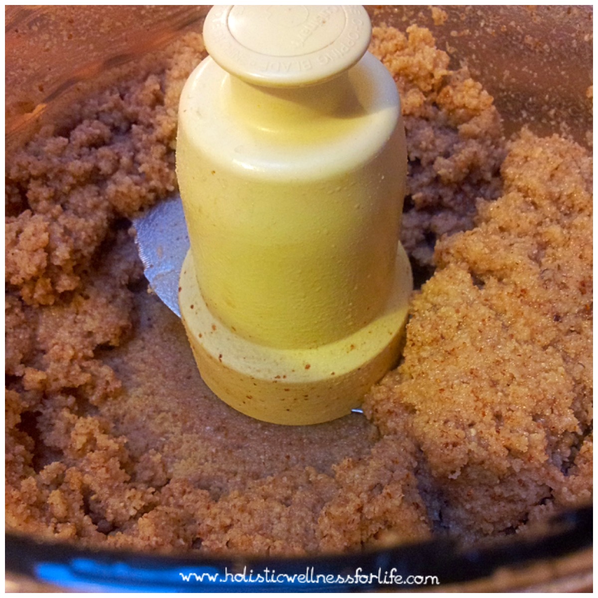 1 cup of nuts (I used raw activated almonds-your choice). If you want a smoother less rustic base you could use blanched almond meal. I like the base crumbly.