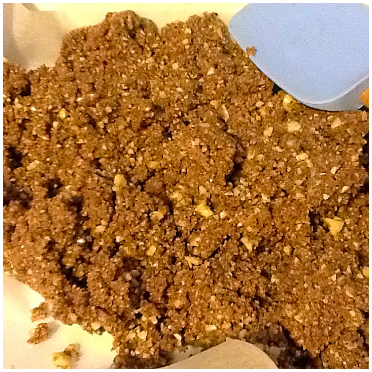 You can see the goodness!Thoroughly mix the ingredients and a few unprocessed nuts are great as they add some chunkiness to the slice.